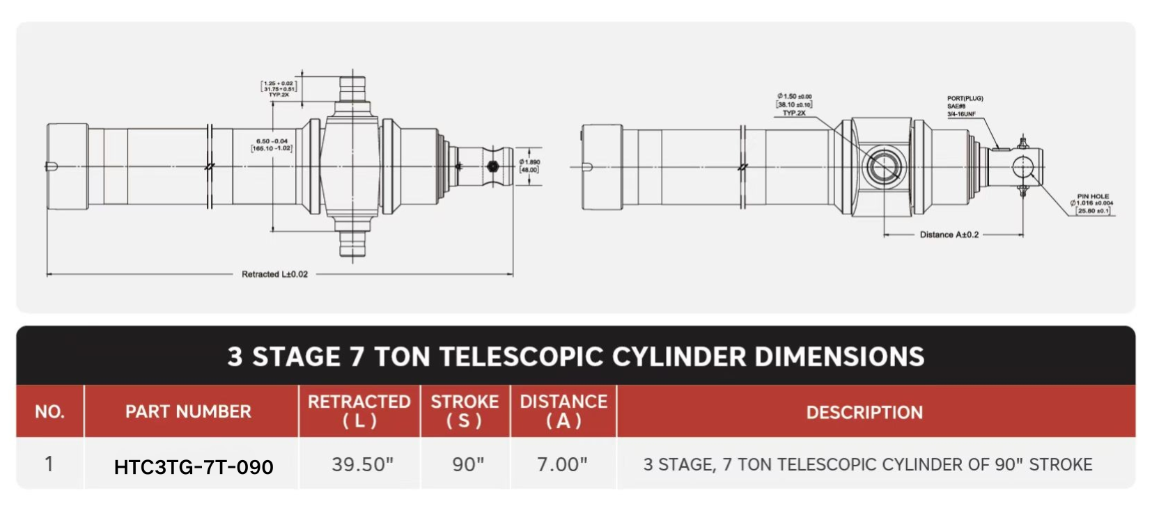 "HTC3TG-7T-090", 3 fokozatú, 7 tonna 90" löketű teleszkópos hengerek