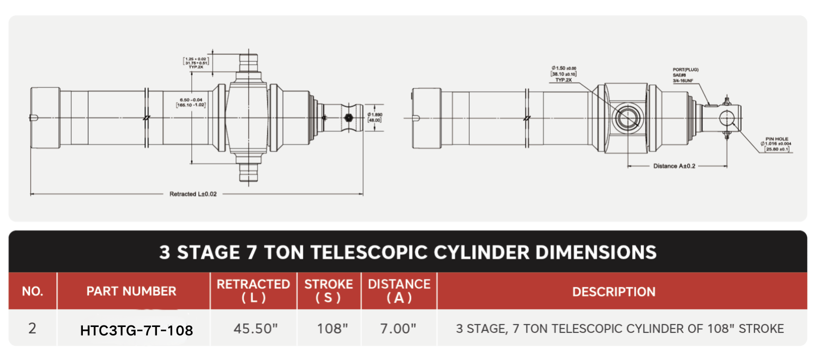 "HTC3TG-7T-108", 3 fokozatú, 7 tonna 108" ütemű teleszkópos henger