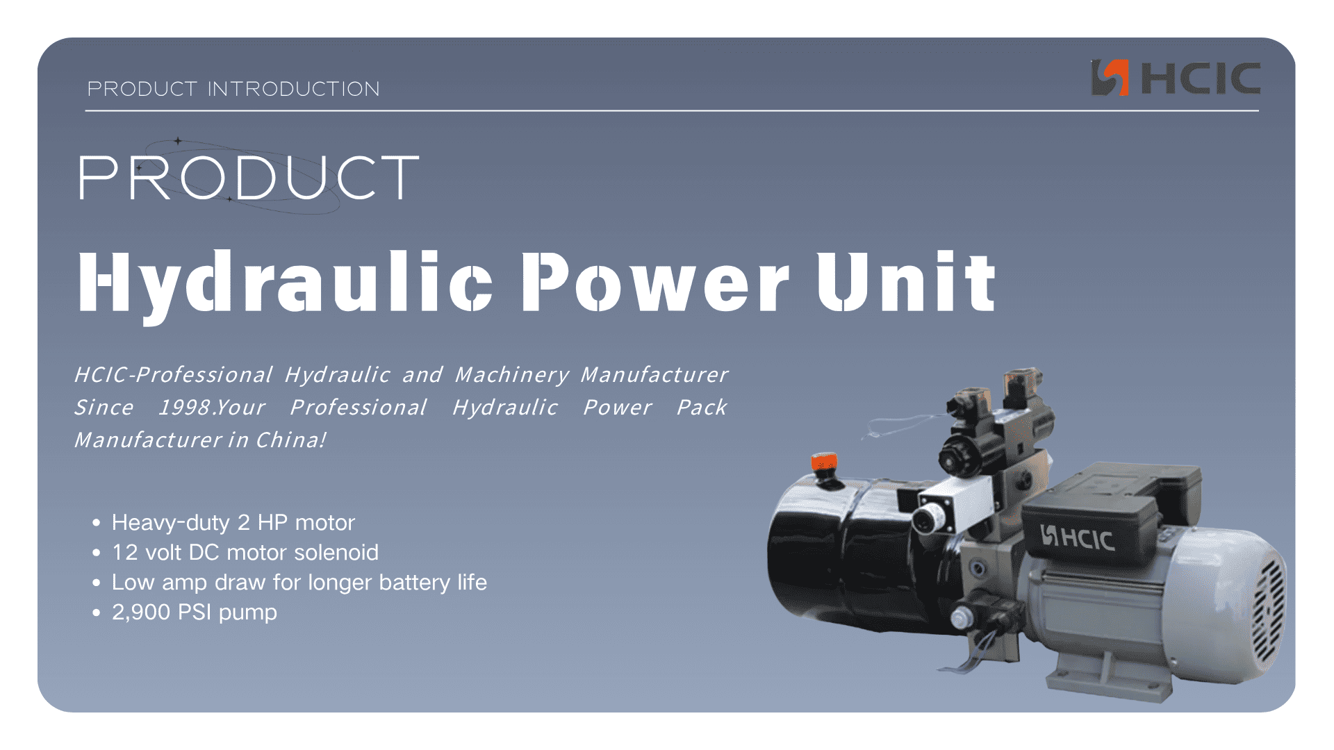 HCIC 12V hidraulikus tápegység – 2,1 köbcentiméteres lökettérfogat, 2 LE motor, 2900 PSI szivattyú, 40 font könnyű, alacsony amplitúdó a hosszú akkumulátor-élettartam érdekében, tökéletes egyenáramú hidraulikus rendszerekhez.